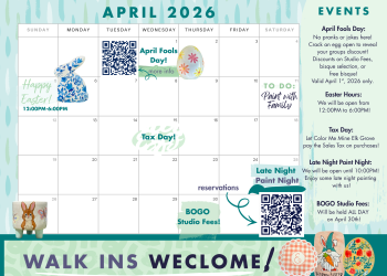 We are a walk-in-studio – open to everyone of all ages. In addition, we offer TO-GO KITS for painting at your place. Check out our Book A Party tab for party/group options.